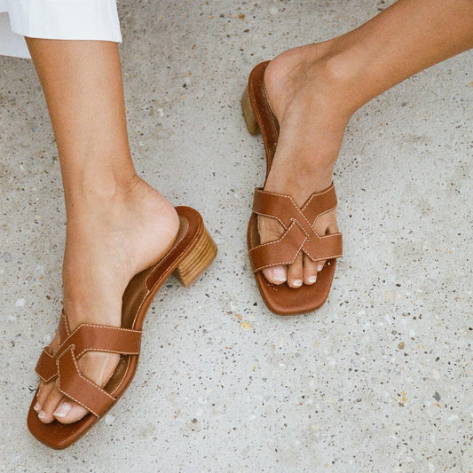 • Margaux's best selling MX 35 heeled sandal in saddle Margaux's best selling MX 35 heeled sandal in saddle