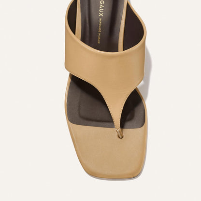 The classic thong sandal is elevated with a walkable heel height and luxurious smooth nappa leather.