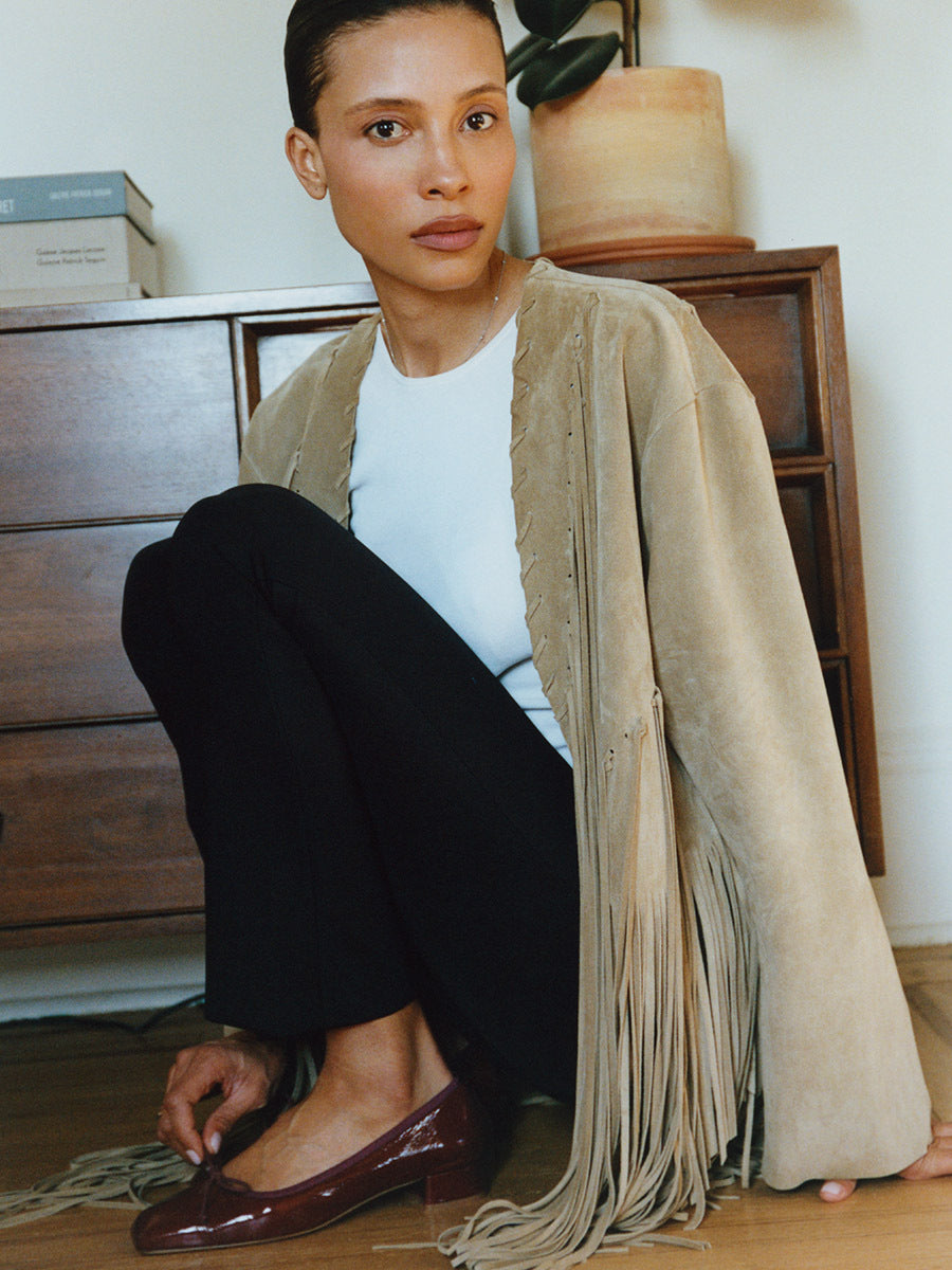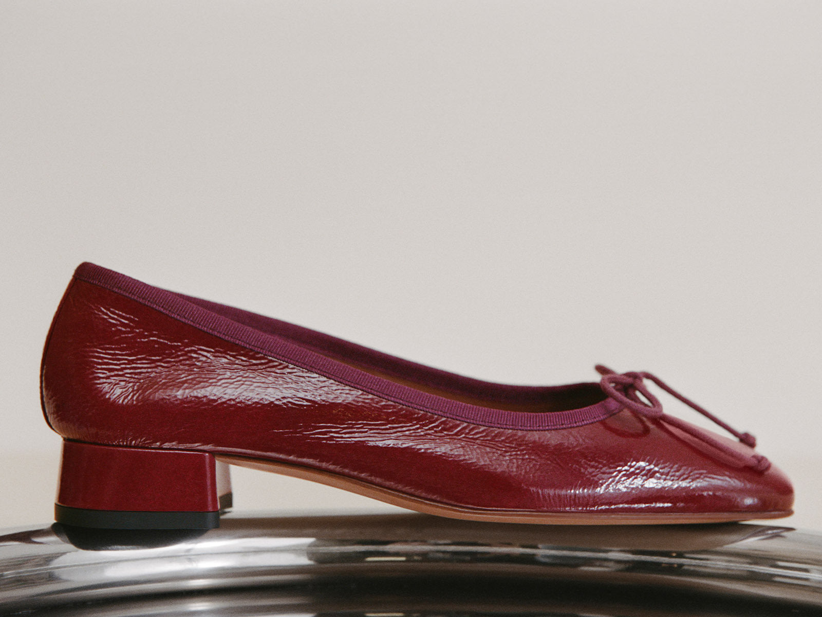 A modern update to a timeless ballet pump, this style features sacchetto construction for a glove-like fit and a comfortable 1-inch block heel.