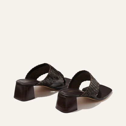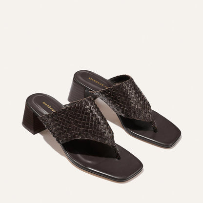The classic thong sandal is elevated with a walkable heel height and luxurious handwoven leather.